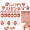 25ct Happy Birthday Party Set with Foil Curtain, Balloon Bouquet, Confetti Balloons, Birthday Banner, Balloon Glue Strip and Balloon Ribbon – Pink