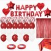 25ct Happy Birthday Party Set with Foil Curtain, Balloon Bouquet, Confetti Balloons, Birthday Banner, Balloon Glue Strip and Balloon Ribbon – Red