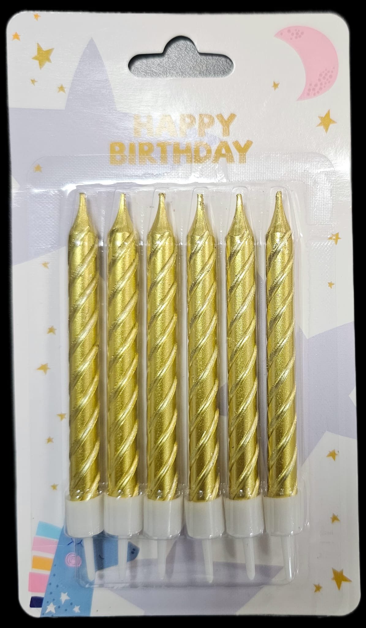 Item # AG57109 Material: Paraffin wax include: 6 CT Paraffin wax Candle Shape Spiral Gold Color