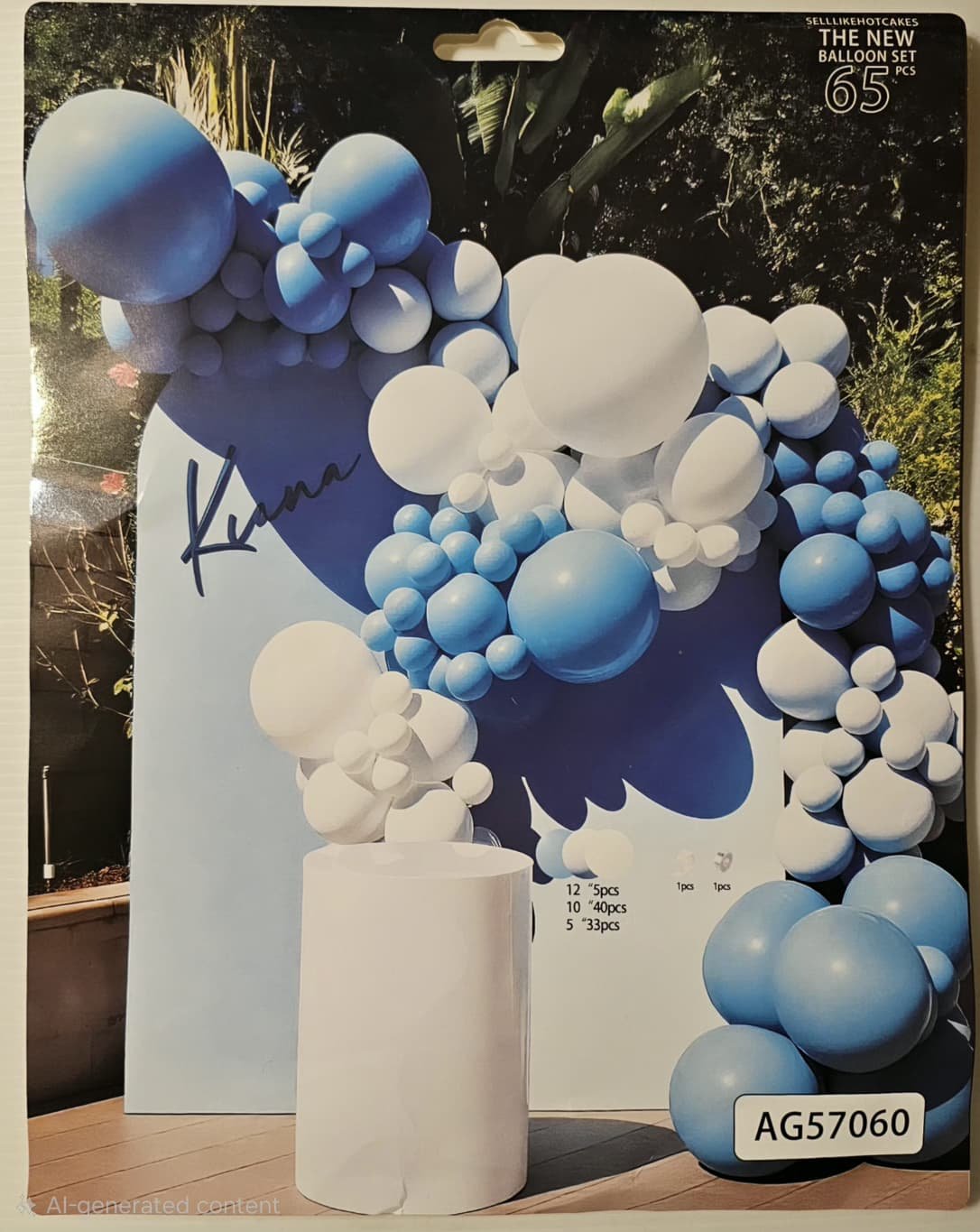 Item # AG57060 Material: Latex Balloon include: 5 Balloon 12 in 33 Balloon 5 in 40 Balloon 10 in 1 Piece Balloon Garland Tape 1 Piece Balloon Garland Glue Dots