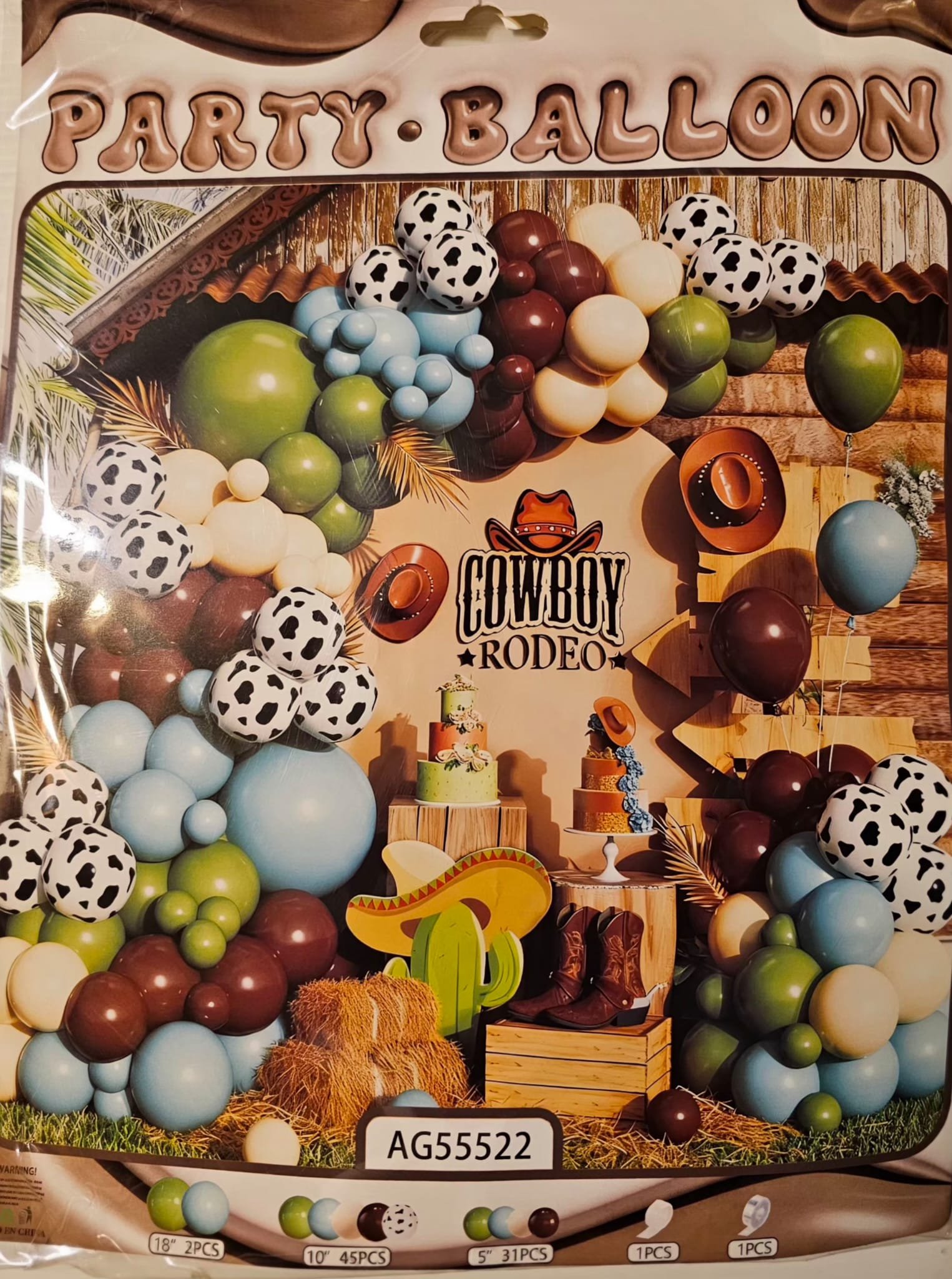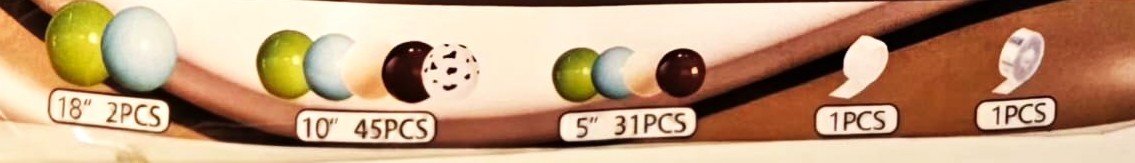 Item # AG55522 Material: Latex Balloon include: 31 Balloon 5 in 45 Balloon 10 in 2 Balloon 18 in 1 Piece Balloon Garland Tape 1 Piece Balloon Garland Glue Dots